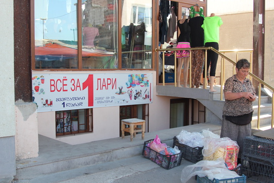 сразу бросается в глаза обилие вывесок на русском, часто без грузинского перевода