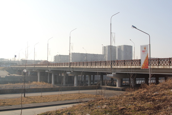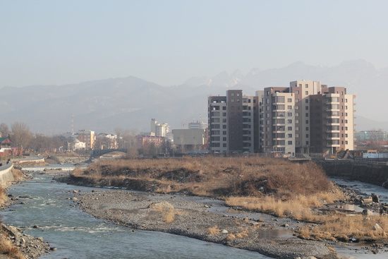 вид с моста на горы и конечно же новостройки