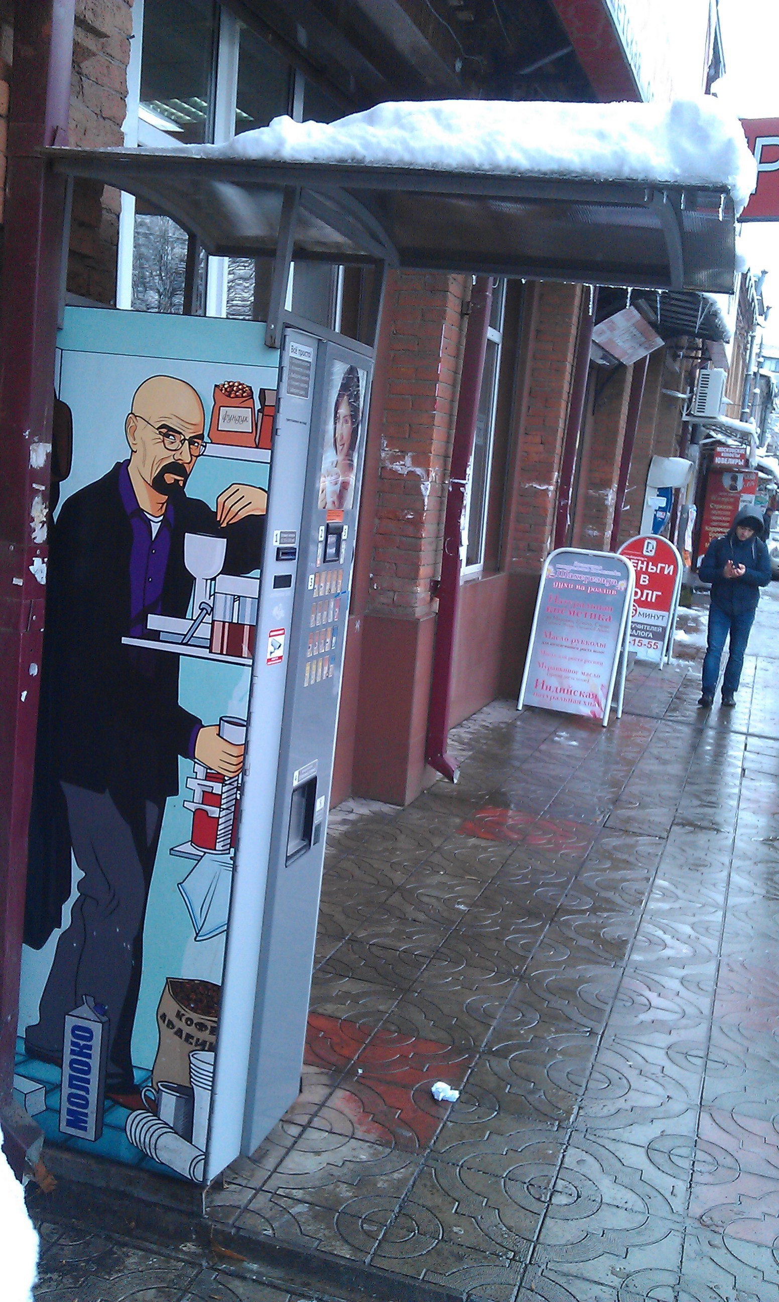 знаменитый "варщик" синего мета мистер Хайзенберг, разливает кофе
