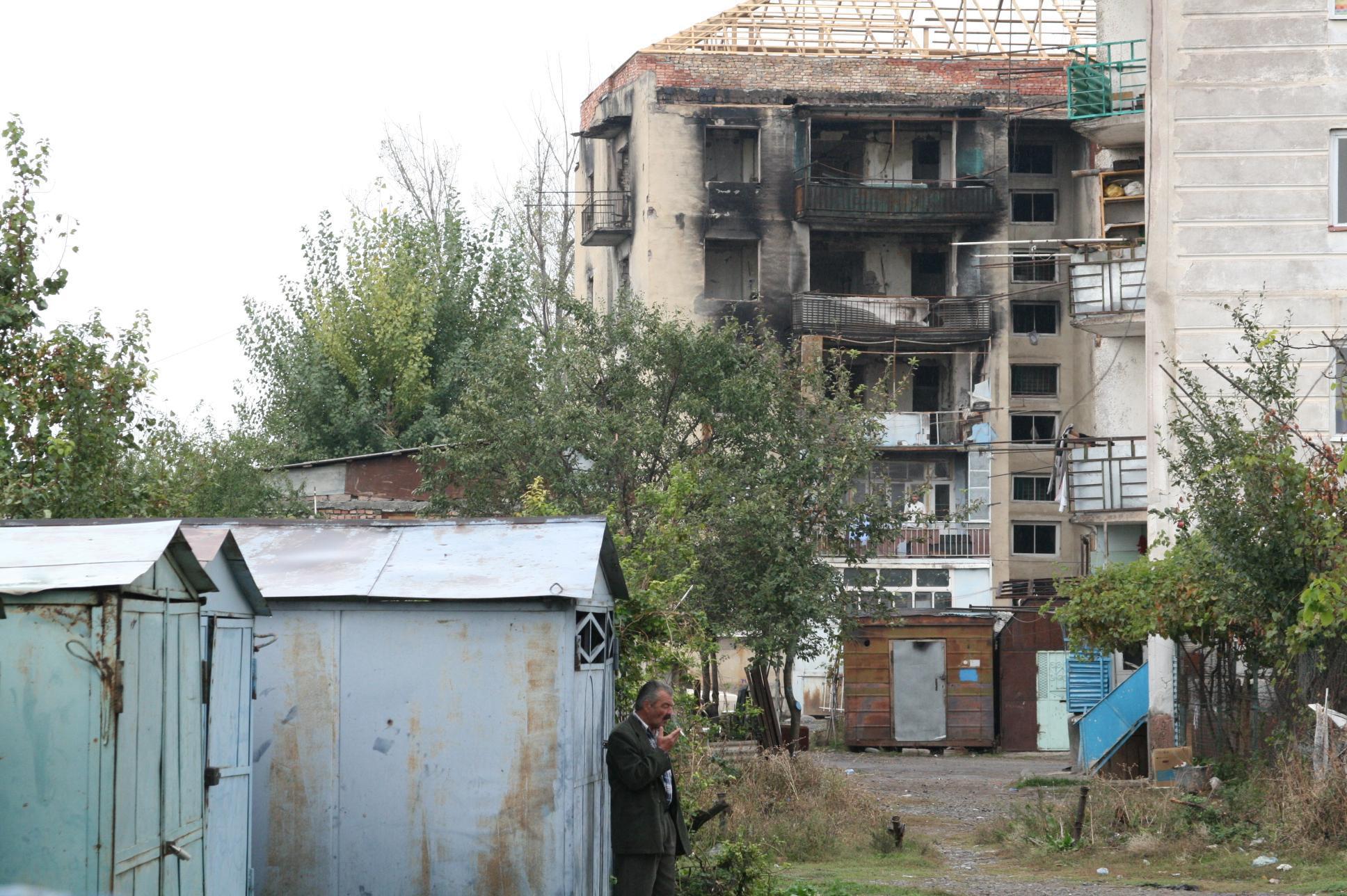 жилой дом на окраине Цхинвала, которая первой встретила грузинские танки.