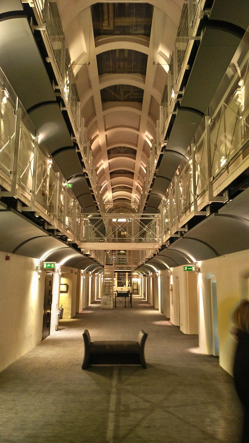еще одна достопримечательность Оксфорда - гостиница-тюрьма. тюрьмой она оставалась около 1000 лет, пока совсем недавно здание не выкупили предприниматели и сделали дорогущую комфортную гостиницу. на любителя острых ощущений, в общем. заказываешь завтрак в номер, тебе его приносят и подают через окошко в двери. хорошо, что на пол не кидают.