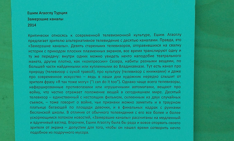 еще из неразобранного... наконец дошли руки склеить пару видео снятых по результатам работы ежегодного художественного форума "Аланика". комментарии на видео от искусствоведа Валентины Зимы. не обращайте внимания на странный свет на первом видео, это такой классный лексан на крыше бесланского Дома Культуры. второе видео снято в бывшей шиитской мечети Владикавказа, больше известной как бывший планетарий.