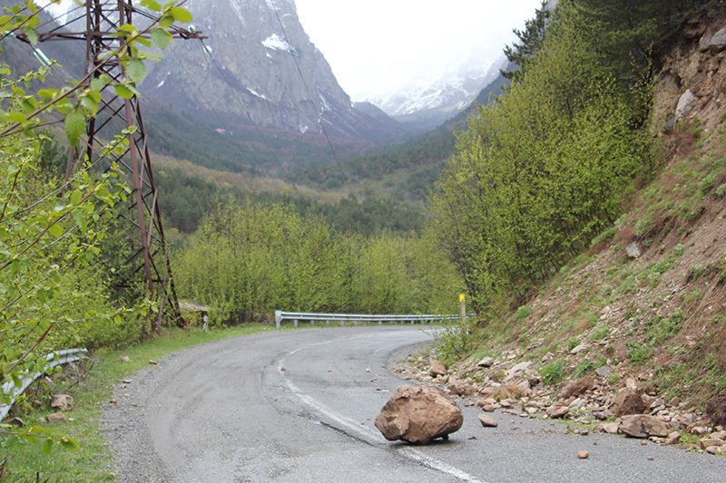на обратной дороге камнепад - частое явление, особенно в сезон дождей, как сейчас: