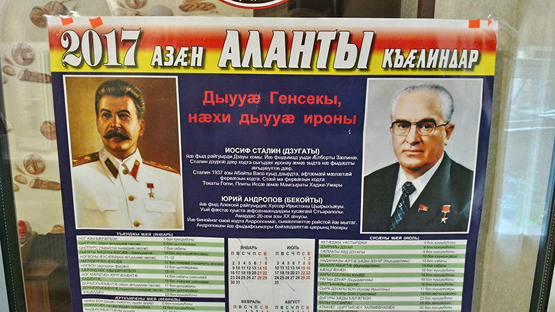 3. "Аланский календарь". И если с тем, что слева давно все известно, то про того, что справа известно намного меньше. "Юрий Андропов (Бекоев), чей отец Алексей родился в югоосетинском селе Цирикау... и тд" Также сообщается, что потомки брата Алексея до сих пор живут в селе Ногир.