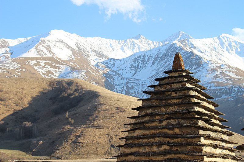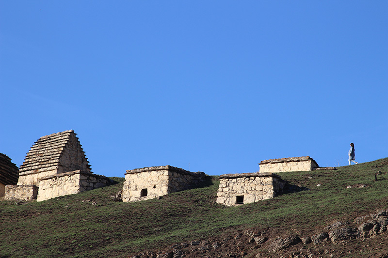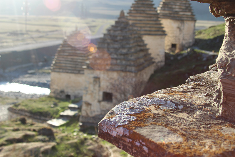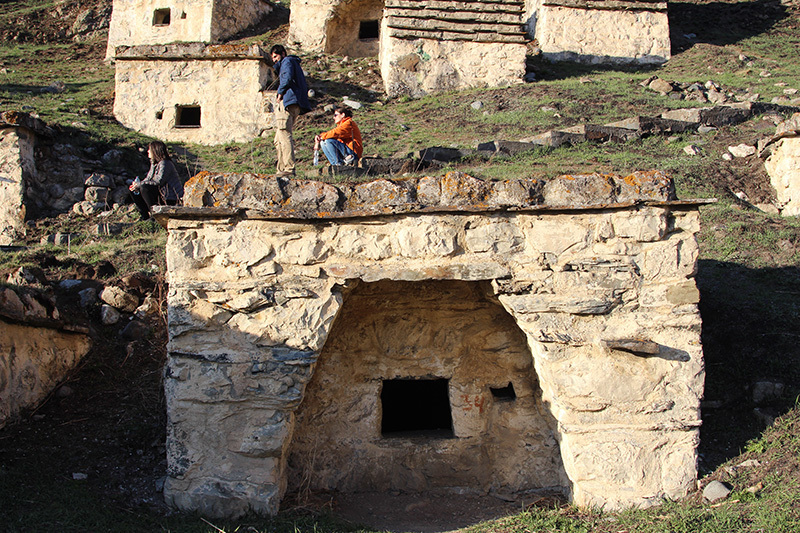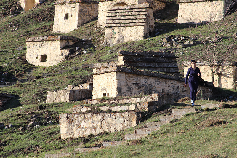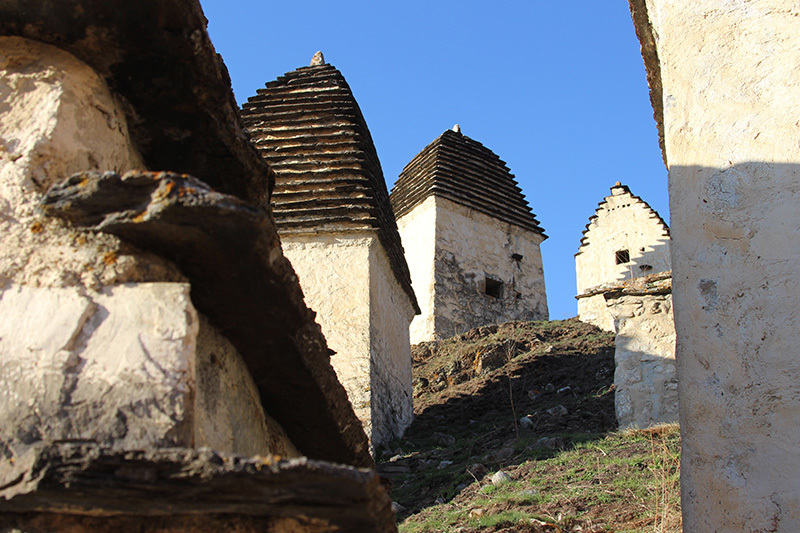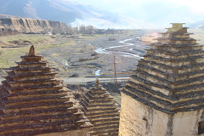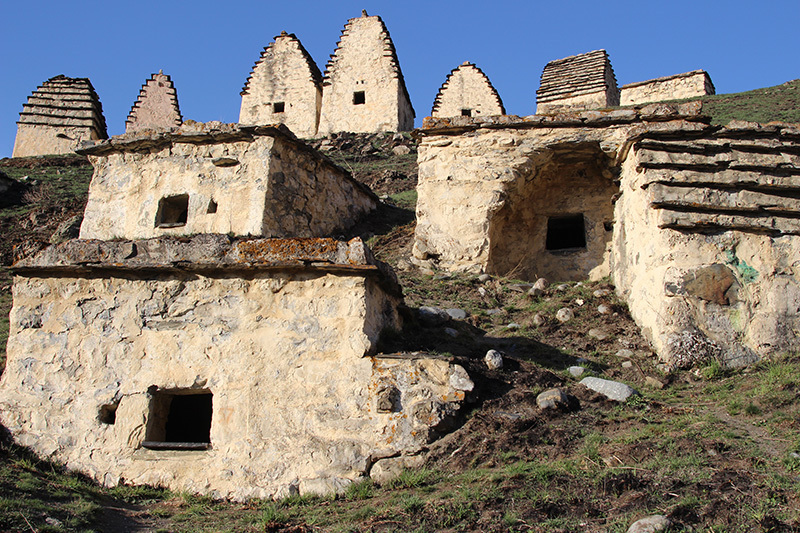 Даргавский некрополь - особенное место в Осетии. около ста склепов не повторяющих друг друга, стоящих на склоне горы. сюда шли доживать последние дни зараженные чумой во время эпидемии 17-18 вв. в одном склепе могут храниться останки несколько десятков умерших. до сих пор нет ответа почему мертвых клали на небольшие лодки, ладьи, так как плавать на них тут негде. иногда проводится параллель с античными мифами и мифической подземной рекой, через которую проходили души умерших. а сегодня это охраняемый архитектурно-этнографический комплекс с платным входом в 50 рублей. я только одного не понял - зачем у окон склепов туристы оставляют монетки?