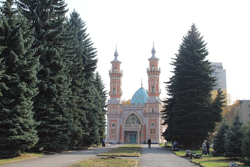 красивые цвета у церкви, на фоне ясного неба хорошо смотрится