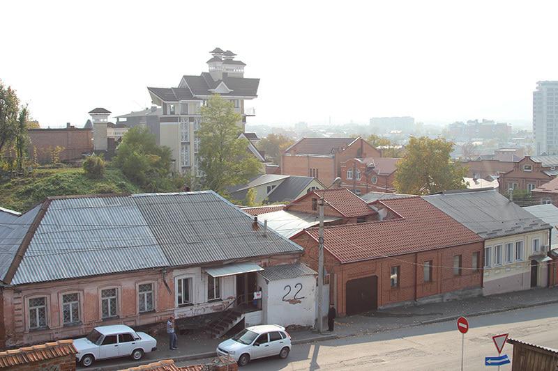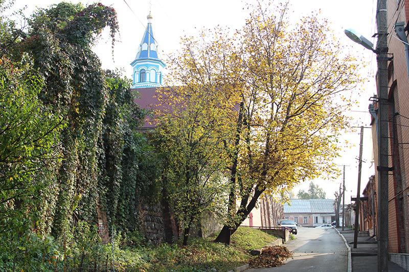 вид со двора церкви и непонятной концепции жилой дом, появившийся недавно