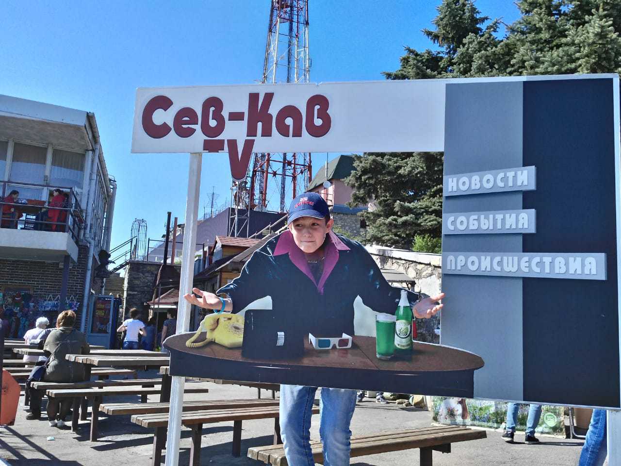 а вот еще один пример как в Пятигорске умело раскручивают новые места и новых героев. на вершине Машука можно сфоткаться в образе звезды СевКав ТВ Жорика Вартанова: