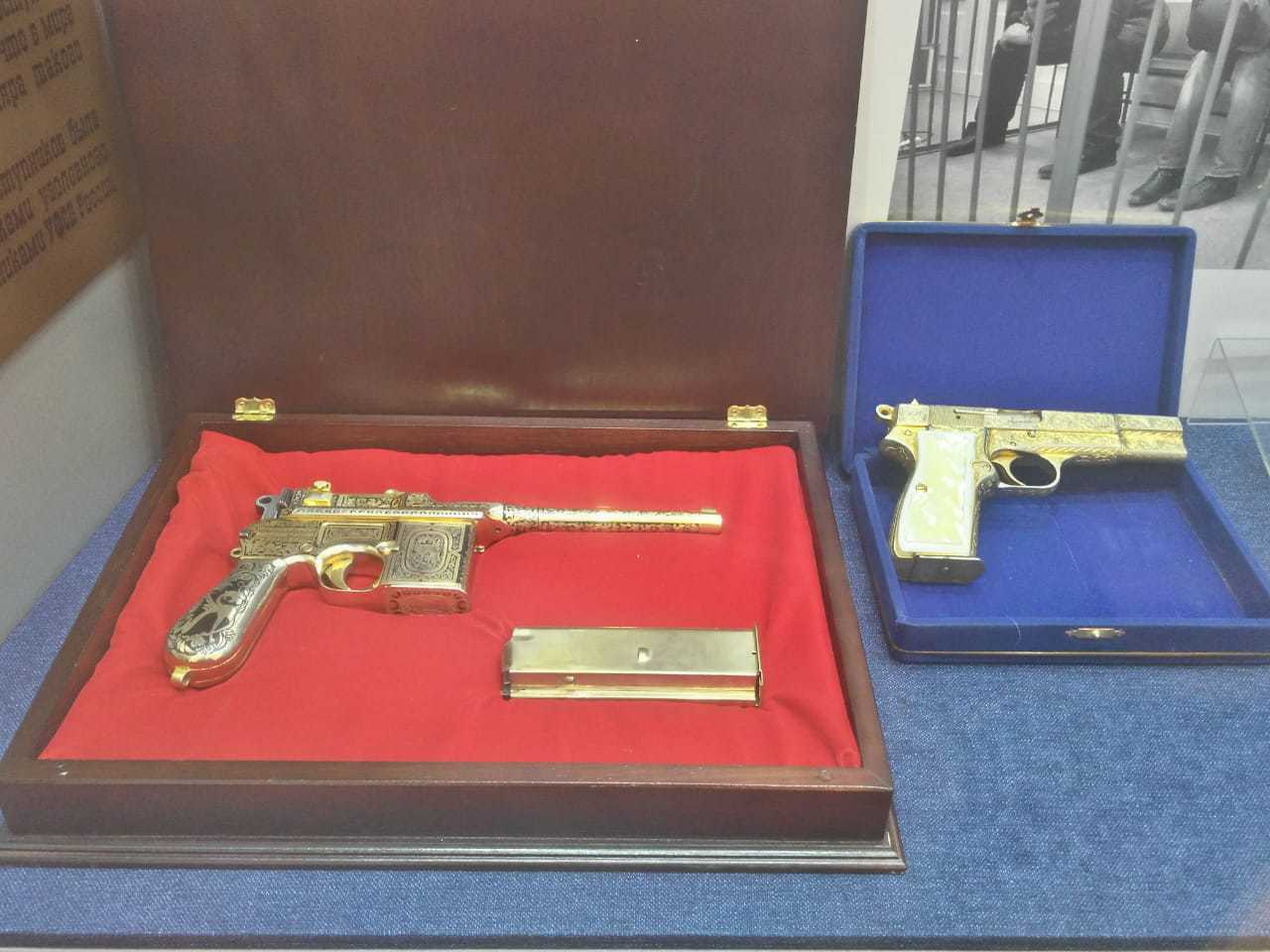 есть даже золотой наган, недавно изъятый у контрабандистов на нашей таможне: