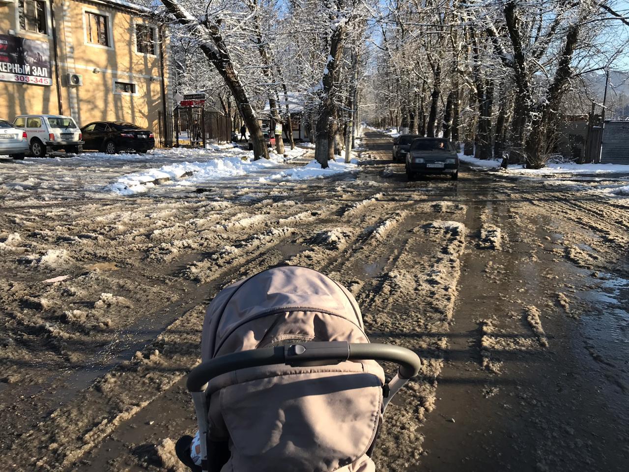 сегодня с погодой типичный владикавказский вариант. это когда полночи валит снег, а потом на утро выходит такое долгожданное яркое солнце, температура поднимается до плюсовой, и все, что вчера казалось таким красивым, превращается в жуткое месиво.