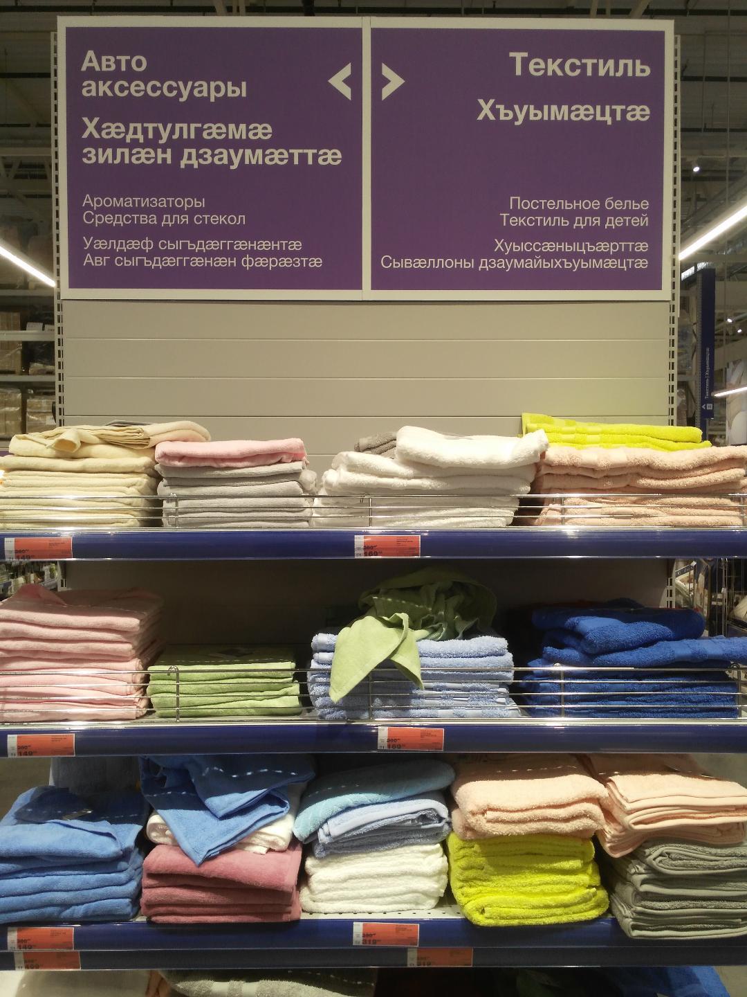 а этим надписям на осетинском был удивлен. гипермаркет Metro. зачитался...