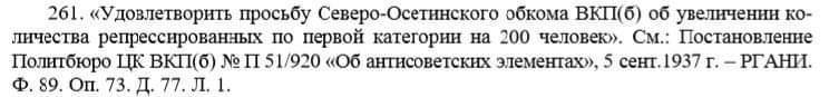 Я давно искал какое-либо подтверждение этим словам, и, кажется нашел. В книге М. Юнге, Г. Бордюгова и Р. Биннера «Вертикаль большого террора. История операции по приказу НКВД №00447» на стр.146 приводится отрывок из письма 1-го секретаря Северо-Осетинского обкома Ф.Г. Кокова к И. Сталину от 6 сентября 1937 г.: «Ознакомившись в НКВД со следственными делами по операции антисоветских элементов, прошу увеличить цифру подлежащих расстрелу еще на 200 человек. Тов. Ежову подробности почтой».