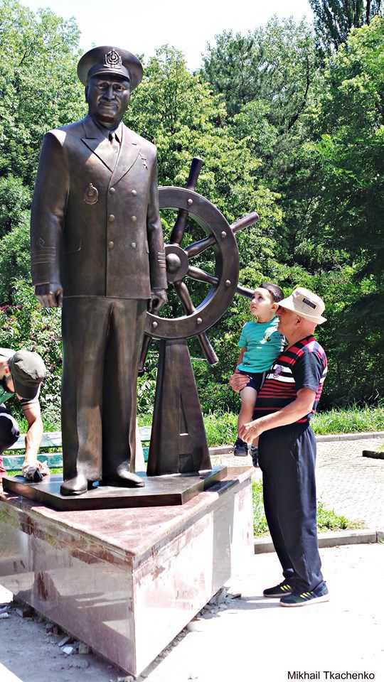 так вот, этот, установленный сегодня памятник - совсем не тот, который стал лучшим на конкурсе три года назад, и за который проголосовали 7 из 8 членов жюри (автор - скульптор из Москвы Юрий Злотя), а который выбрало в итоге руководство общественного движения "За здоровье нации" во главе с Арсеном Фадзаевым, которое и является инициатором установки памятника великому капитану, первооткрывателю Арктики.