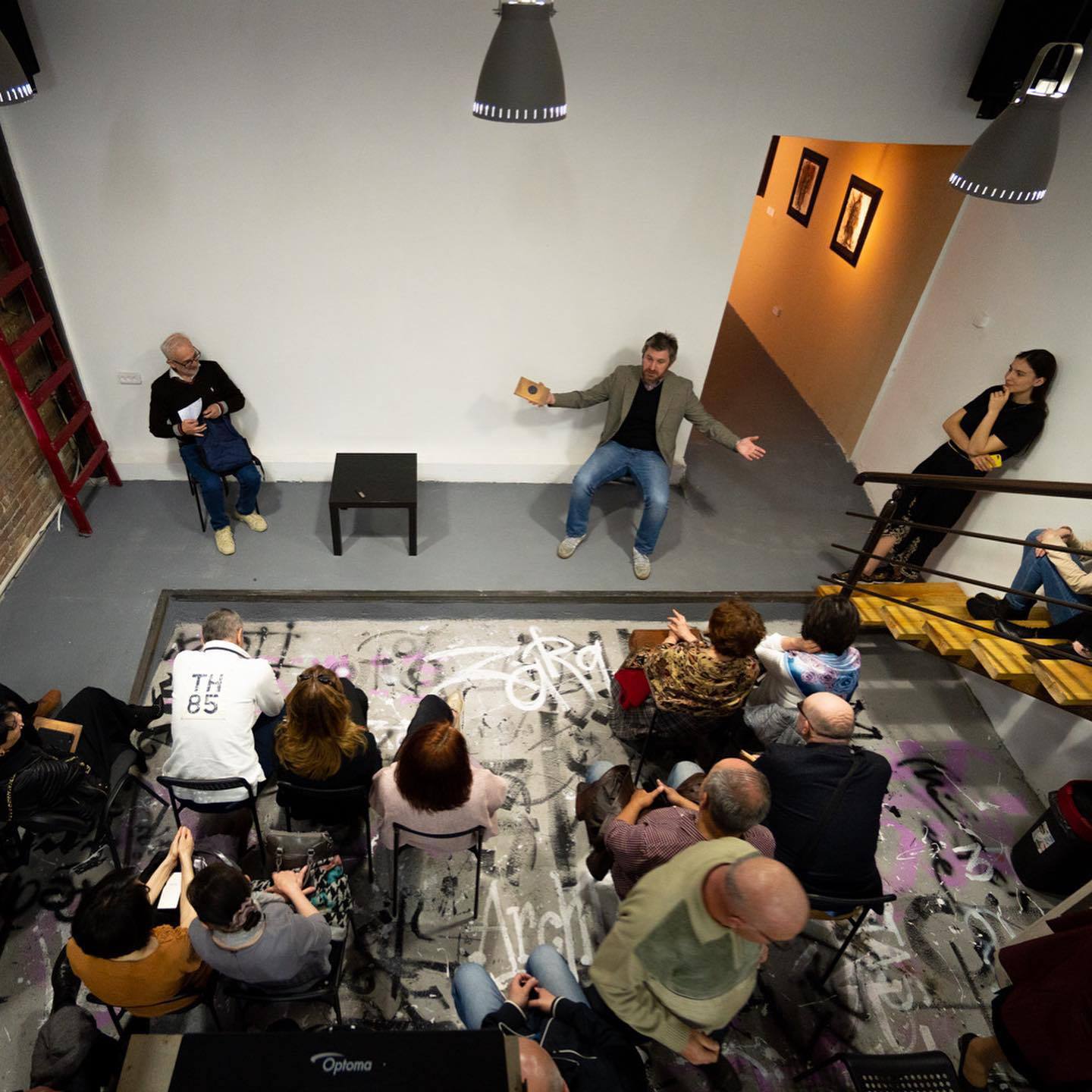 вчера по приглашению Тамерлана Тадтаева участвовал в презентации его новой книги "Ангел Бесы" (здательство "НЛО"). событие происходило в местном центре современного искусства.