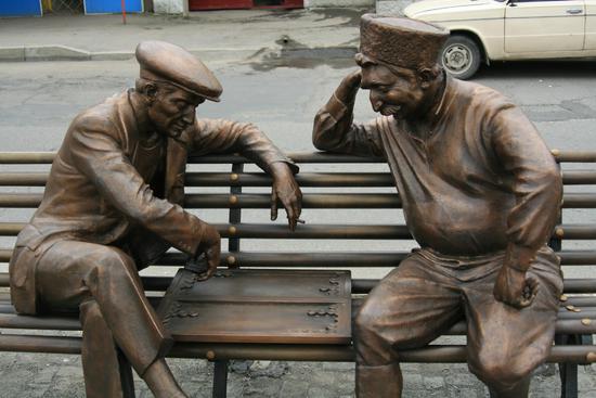 наверно это не просто новый памятник в Осетии, но и новый памятник ДЛЯ Осетии. наконец-то первый памятник, который сделан не в этой надоевшей пафосной манере, без грандизности, без этой лживой величественности, без диких размеров, которые врут. а всего лишь кусочек жизни. очень приятная картина, сегодня все останавливались посмотреть и у всех была улыбка на лицах. и даже авторство сделано как будто выцарапано ножом на дереве.
