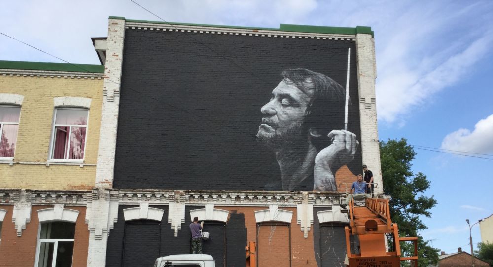 сходил посмотреть новое огромное граффити, на днях появившееся на стене музучилища имени Гергиева. изображен там тоже, понятно, Валерий Гергиев.