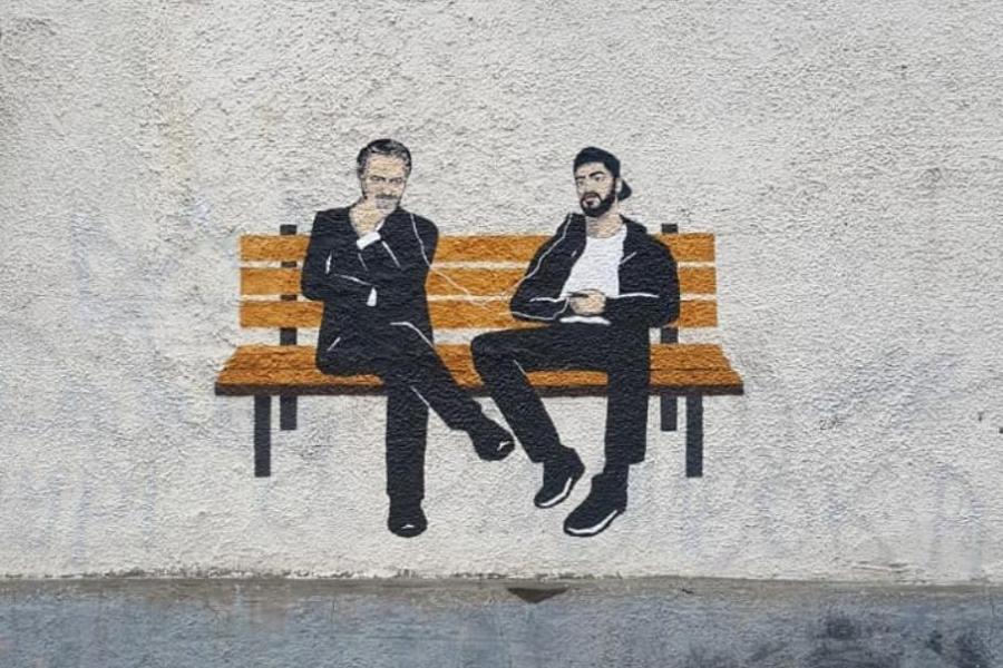 PS. это не первое граффити знаменитого режиссера во Владикавказе. ниже еще одно от художника под ником "Я люблю Осетию". Гергиев и Мияги: