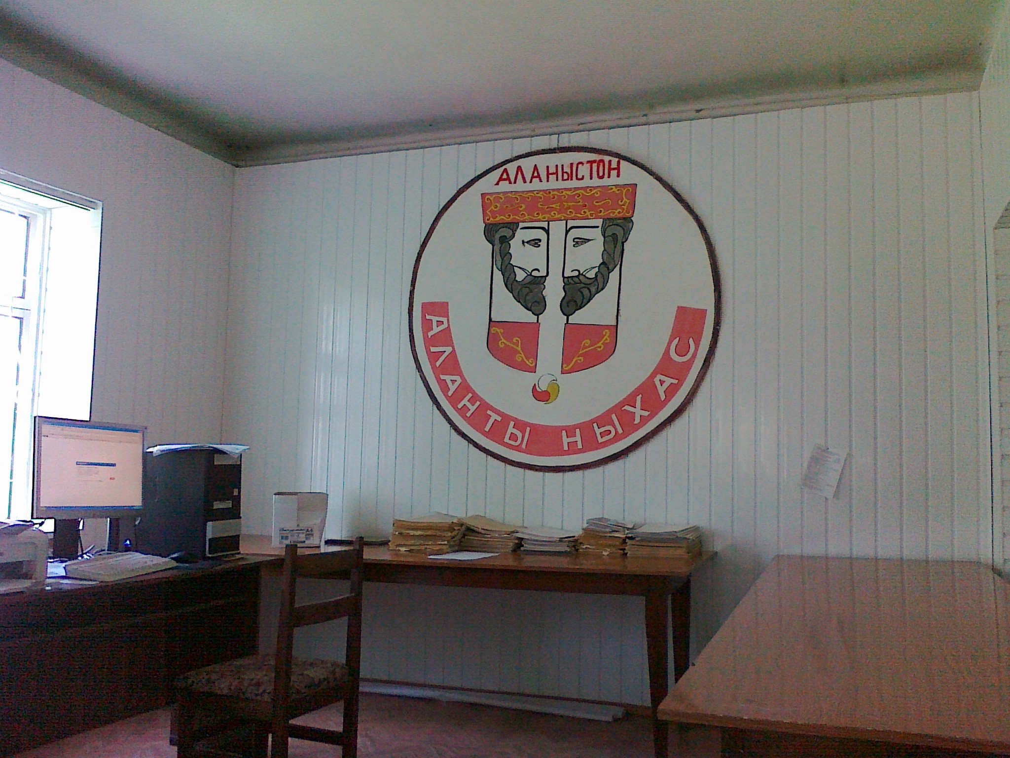 8. в кабинете одной из сельских администраций Северной Осетии. надпись по осетински: "Аланыстон", т.е. "страна аланов".