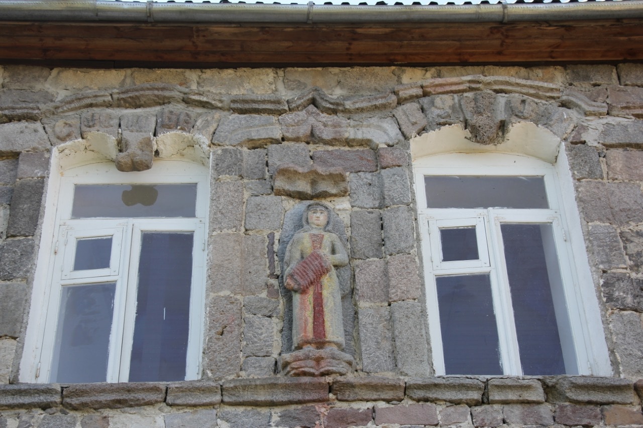 но все равно дом, построенный самим Едзиевым, дает представление о художнике. даже кладка выглядит необычно красиво. обратите внимание на небольшой потрет на арке. таких деталей там полно.