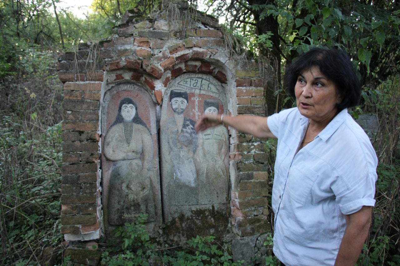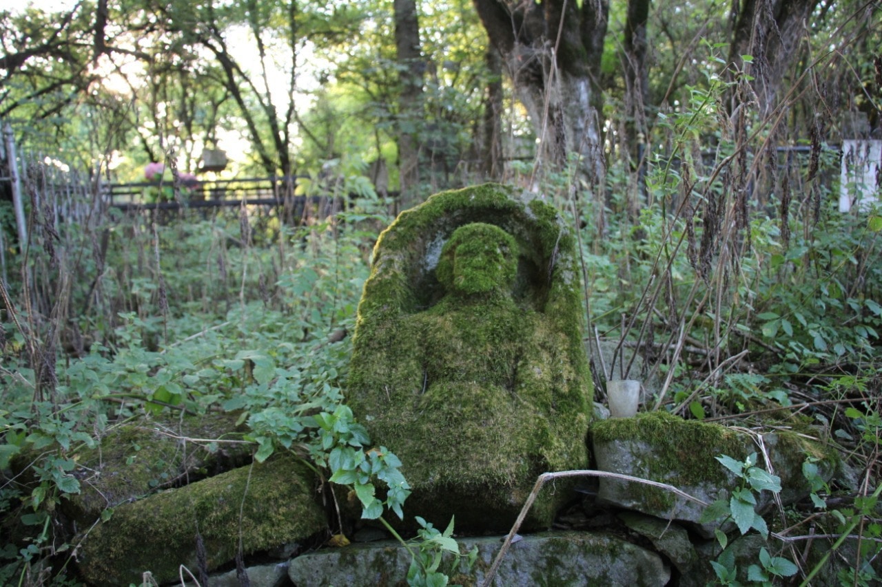 это наиболее сохранившийся могильный камень. на фото Людмила Караева, жительница этого села и также очень интересный скульптор. о ней в следующей публикации.