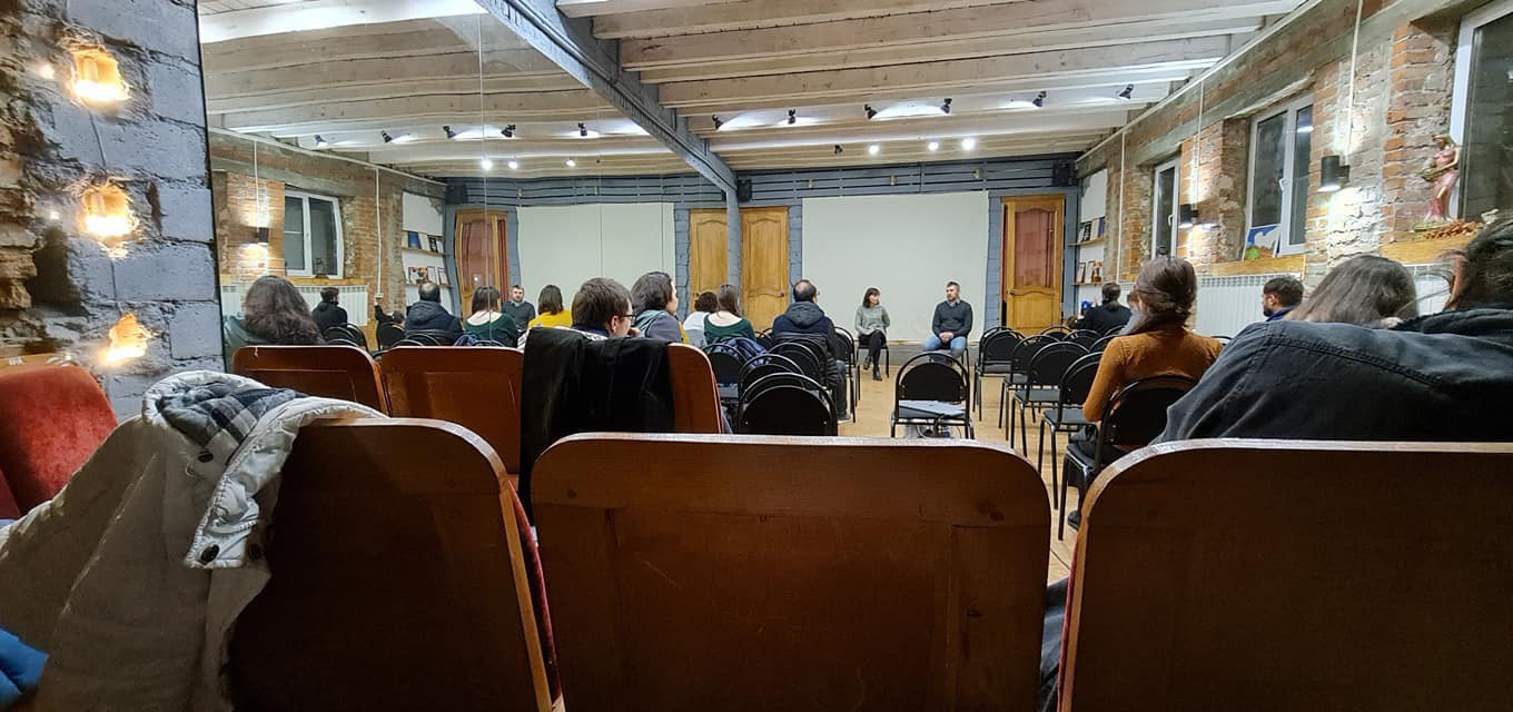 замечательное место, где все это происходило, не могу не сказать два слова о нем: ШКиТ - Школа кино и танца. независимое пространство, организованное одной актерской семьей. раз в неделю здесь смотрят неглупое кино и обсуждают. но кроме киноклуба тут проводятся самые разные встречи. а еще есть здесь же замечательная кофейня "Уæнгрог" ("бодрый" на осетинском). спасибо за возможность вот так встретиться оффлайн и пообщаться. конечно, социальную дистанцию мы соблюдали.