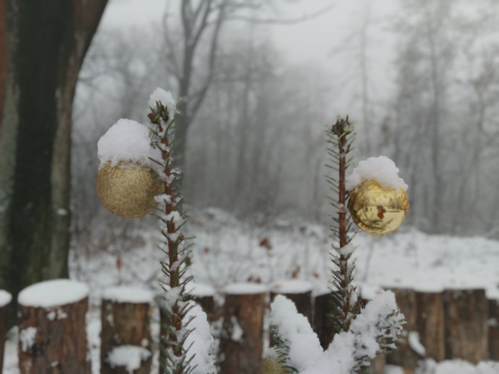 вышел на обычную прогулку в лес и удивился, лес тоже нарядили. не знаю кому это в голову пришло, но мило...