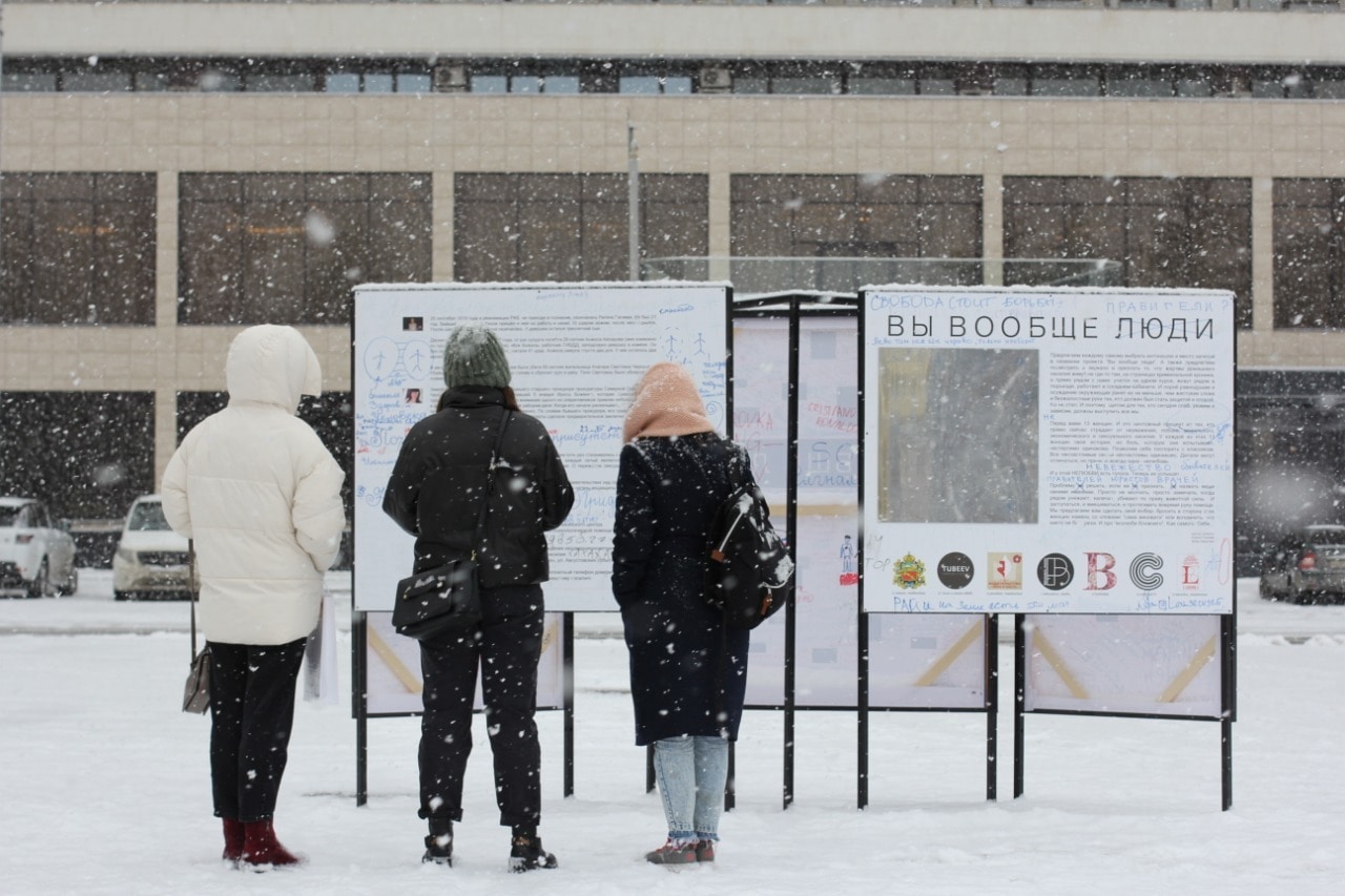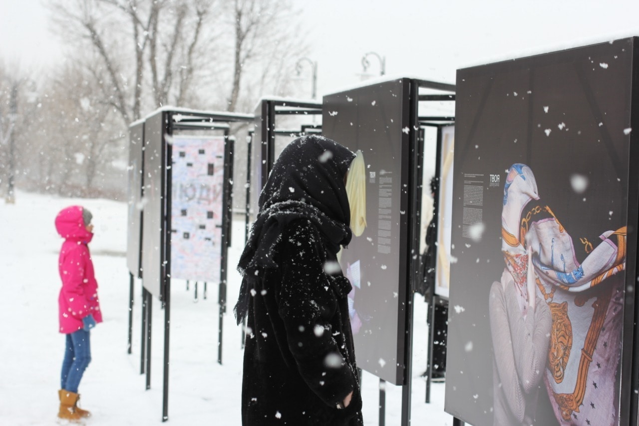 я попал на выставку лишь на третий день, что удивительно - несмотря на снегопад и мороз, людей было много, они подолгу стояли и читали эти длинные истории, проникали в истории героинь. это только говорит об актуальности проблемы.