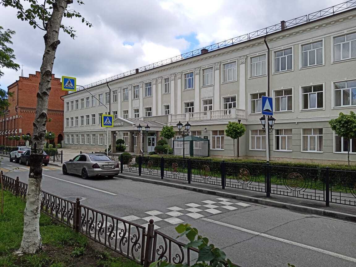 неплохо вписывается в общую невысокую застройку и здание техникума - бывшей прогимназии, где учился Коста Хетагуров.