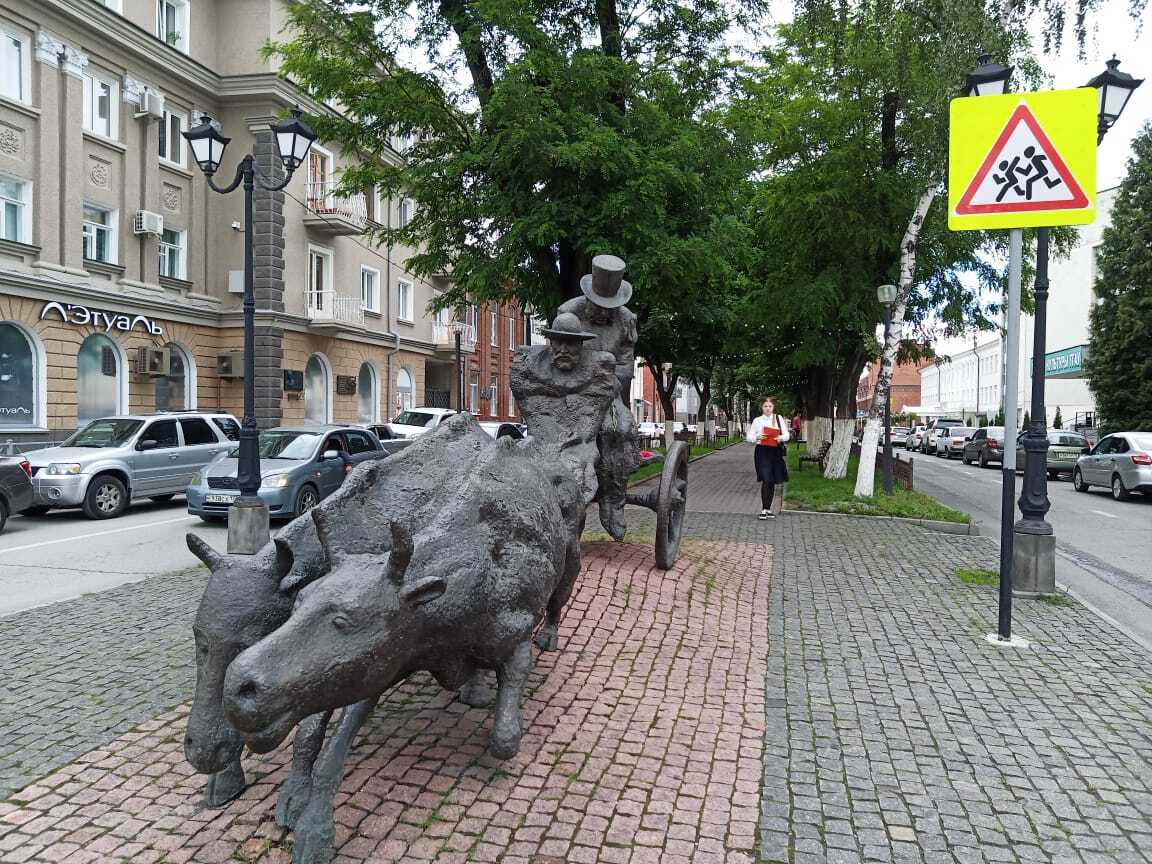 традиционно привлекает внимание туристов и мрачная скульптура Пушкина, въезжающего во Владикавказ: