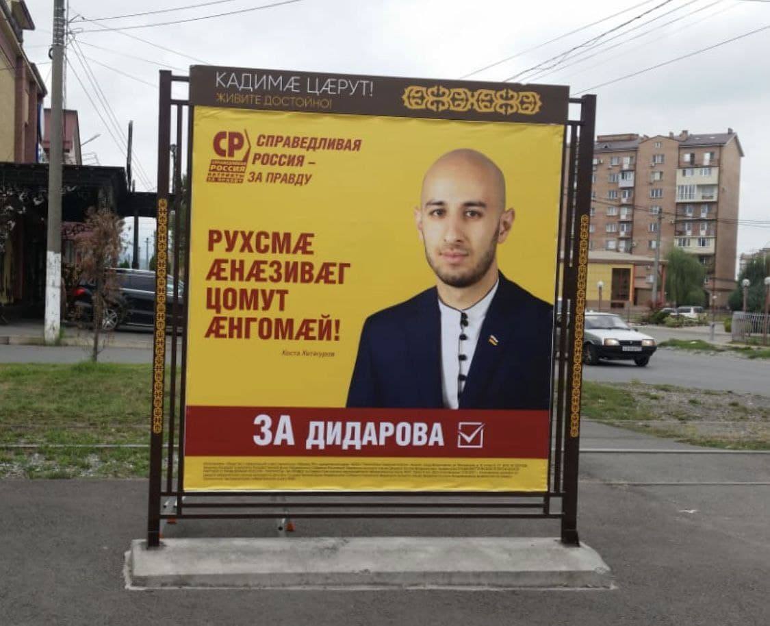 вот плакат Сослана Дидарова от "Справедливой России" с цитатой из Коста Хетагурова: