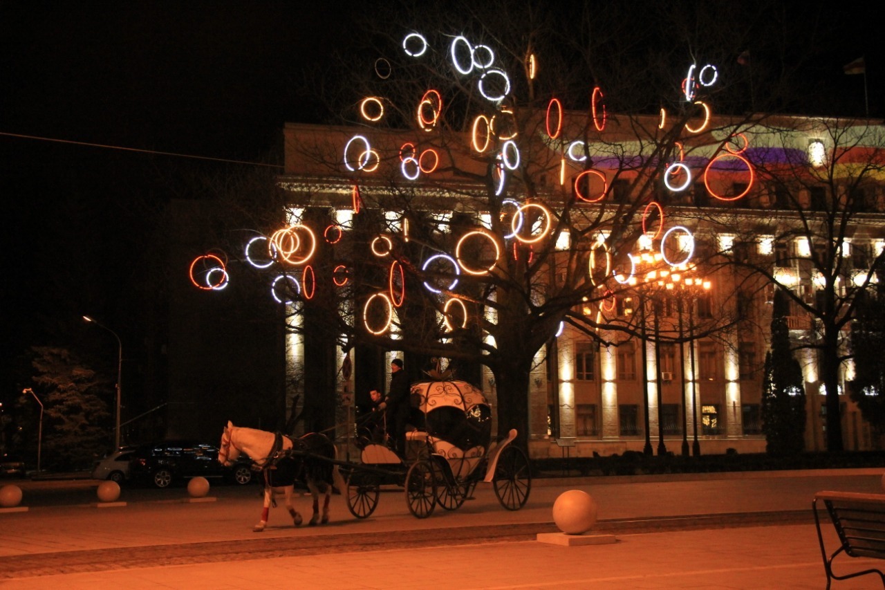 в этот раз Владикавказ постарались как-то живей подсветить, создать какую-то атмосферу новогоднюю. может и удалось, не знаю. я провел конец года в такой гонке непонятно за чем, что было совершенно не до праздника. этот новый год я совершенно не почувствовал, не успел расслабиться. а после уже, когда все чуть замедлилось, сделал эти фото, немного передающие новогоднюю атмосферу в городе.