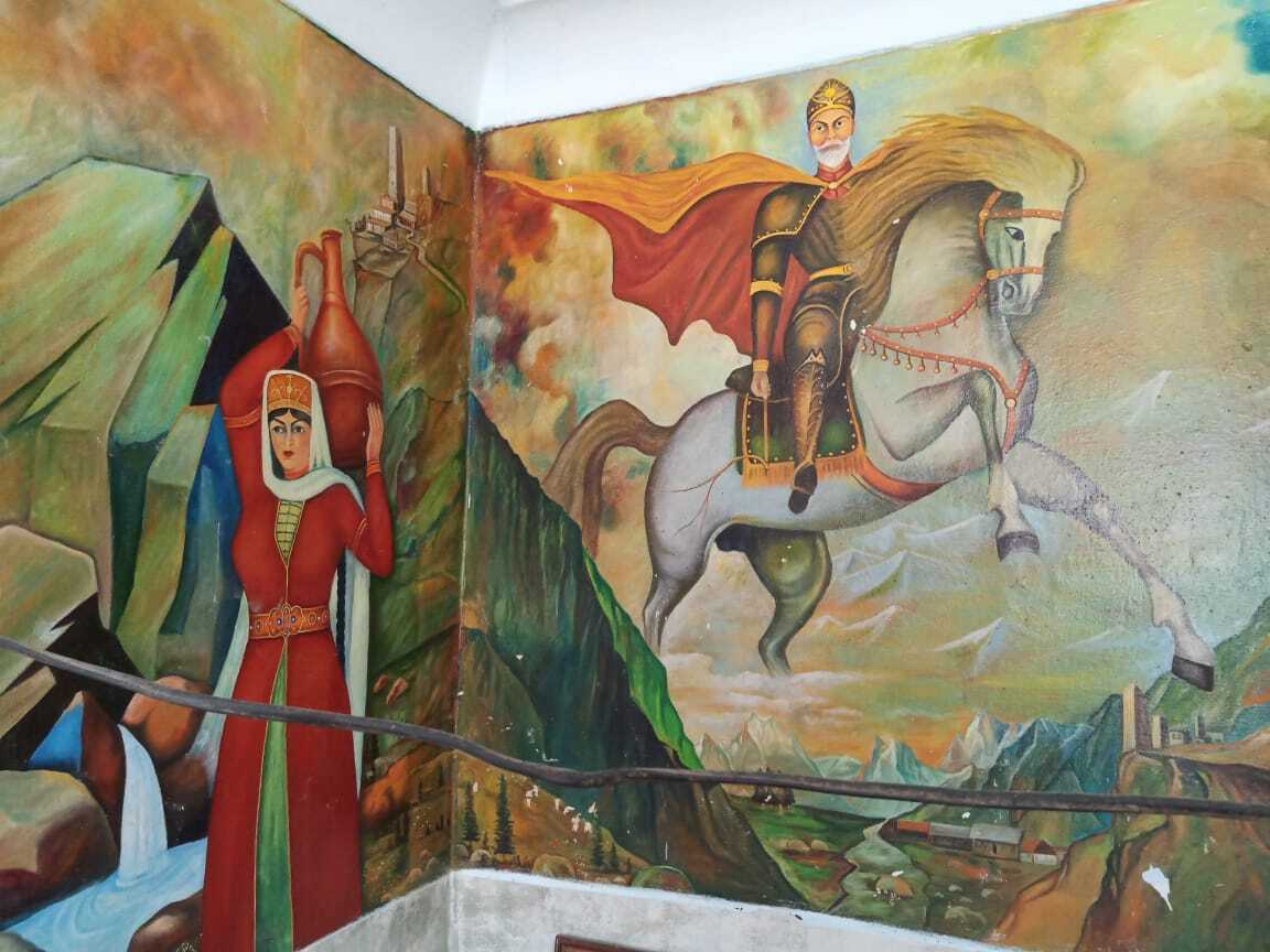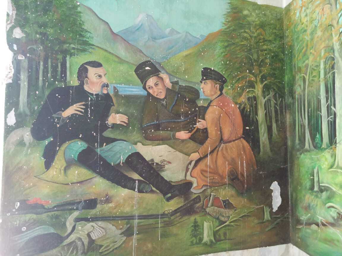 но сейчас хотел рассказать о другом - на выходные опять оказался в Садоне, поехали с семьей по горам погулять и заехали. есть там что-то притягательное. в одном из домов нам показали квартиру, где жил художник-самоучка Владимир Дарчиев. днем он работал на шахте, а по вечерам писал картины, причем на стенах своей квартиры в том числе. и писал очень неплохо для самоучки. вот этими картинами и хочу поделиться. на них пейзажи, известные осетины, родня художника и репродукции известных картин.
