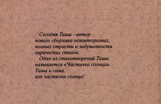 попалась мне тут в руки книжка, сборник стихов от местной королевы гламура, победительницы Мисс Алания - 2005, Таши Газдановой. вертел я эту книжку в руках два дня, пытался как-то это явление, несмоненно заслуживающее внимания, осмыслить, понять... но так и не смог, не хватает таланта, да и просто слов. поэтому просто сканирую и сваливаю весь этот абсурд на ваши головы. читайте, смотрите, делайте с этим что угодно...