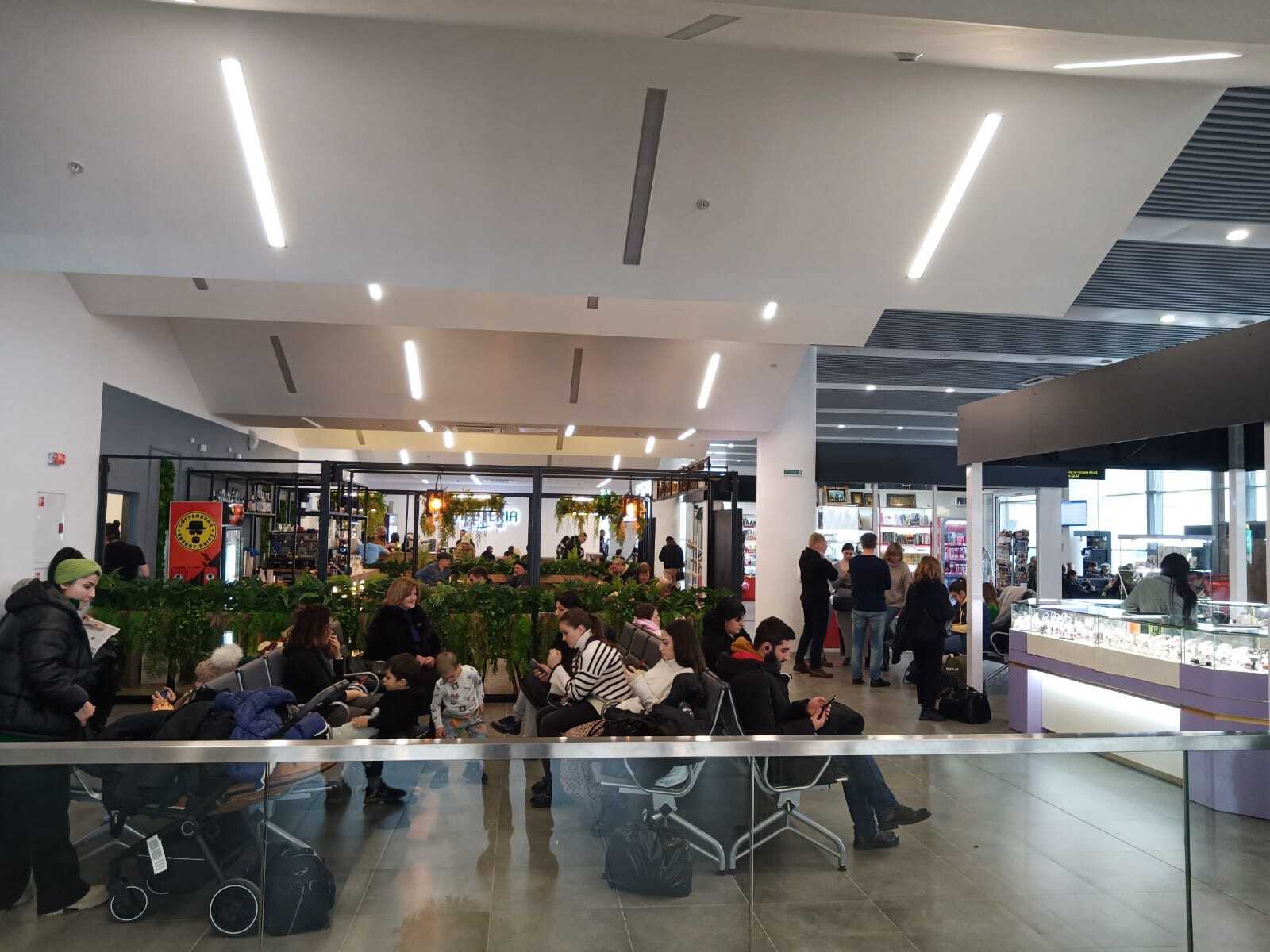 другой минус, но поправимый, это работа табло. мой рейс задерживался на час, а на табло не было никакой информации совершенно, оно врало, что все "по расписанию". и никаких объявлений в зале. в итоге люди нервничают, ходят что-то узнавать... а достаточно было просто написать "задерживается"... ну это персонала ошибка, поправимая.