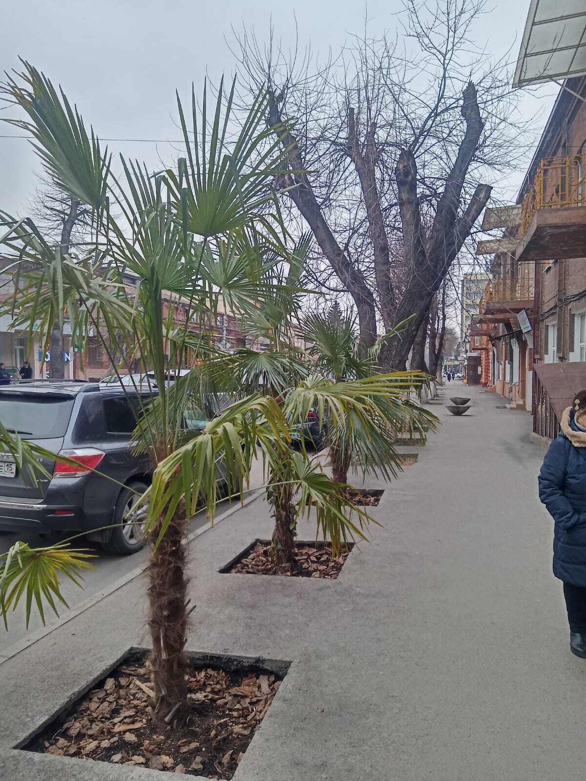 но я хорошо помню как один из наших одиозных мэров уже делал такой эксперимент - пальмы были высажены на набережной Терека. насколько помню, это был подарок из Абхазии. сколько-то они там простояли, но в итоге засохли и были выброшены.