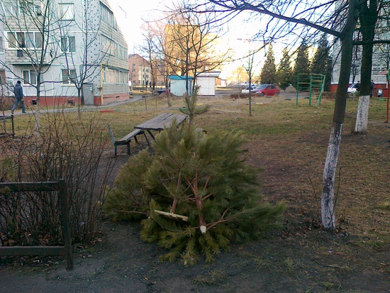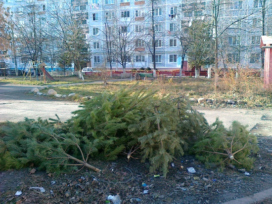 это они, те самые новогодние "крсавицы". они сделали свое дело, повеселили людей, теперь место "красавицам" на свалке.