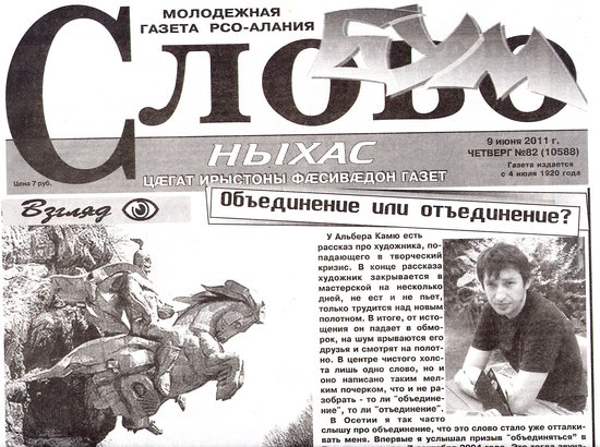 открываю для себя новые горизонты. на этот раз молодежная газета при министерстве культуры республики "Слово". газета, которую я кажется никогда в жизни даже не держал в руках. но когда оттуда позвонили, почему-то сразу согласился. вообще-то, в последнее время отказался сразу от нескольких предложений, пусть и небольших, но все же, писать решительно ничего не хотелось. а вот предложение от "Слова" как ни странно поломало напавшую на меня апатию и растерянность перед последниим событиями и я написал этот небольшой текст.