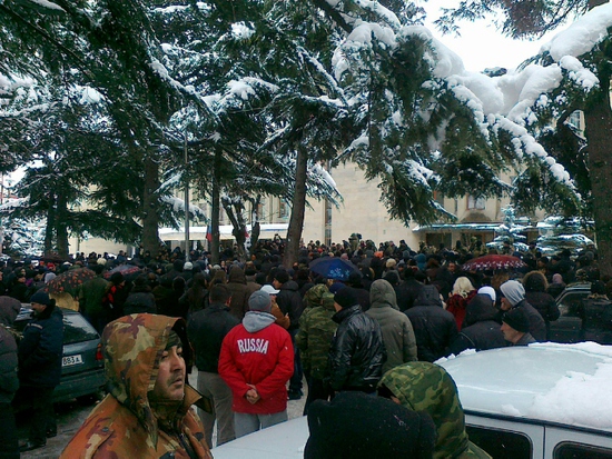 21:15 - Кокойты освистали. Джабеевич только что выходил к людям из здания правительства. окруженный охраной начал уговаривать людей разойтись. даю, говорит, гарантии, что никаких арестов по ночам не будет (именно этого боятся люди). его не стали слушать, начали свистеть, кричать что-то оскорбительное, он еще попытался высказаться, но в итоге пришлось просто развернуться и уйти обратно в здание.