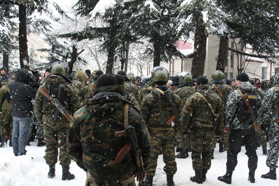14:25 Становится больше ОМОНа с дубинками. По слухам Кокойты тоже находится в доме правительства. Продолжаем стоять здесь, перебирая ногами гильзы. Мобильная связь почти не работает, могу отправлять только смс.