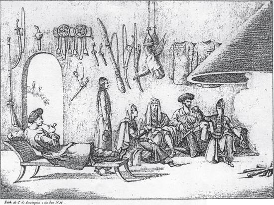 Тебу де Мариньи. Внутренний вид черкесского дома. 1823.