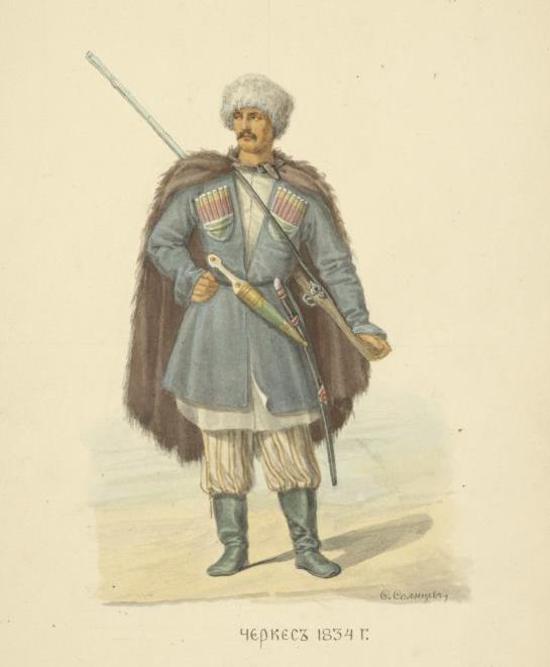Любовь славянофилов к русскому платью - допетровской эпохи: платье это они носили как вызов, как символ отрицания европеизма. Это было осознанное оппозиционное действие, но достаточно поверхностное и искусственное. Славянофилы не пытались, да и не могли вжиться в мировосприятие допетровского русского человека. Черкесское платье русского "кавказца" было, по сути дела, таким же вызовом, но скорее подсознательным и потому более глубоким. Русский офицер органично воспринимал мир Кавказа как свой мир.