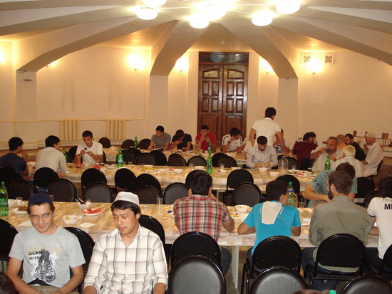 Каждый вечер для мусульман в мечети организуется разговение. На фото - помещение для разговения мужчин