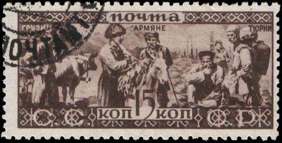 Этнографическая серия 1933 года «Народы СССР» - одна из самых интересных. Эти марки ярко показывали тектоническую работу, модернизационный и интеграционный проект, реализованный в СССР. Несколько марок посвящены народам Кавказа.
