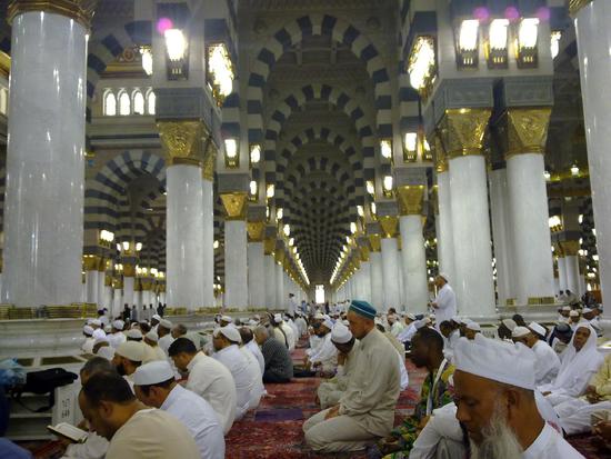 Паломники в мечети Пророка Мухаммада в Медине