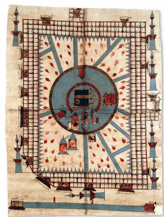 Эта карта Великой Мечети Мекки (Масджид аль-Харам ) является частью литературной традиции для паломников в Мекку. В этот период активно издавались книги молитв, практические руководства со схематическими изображениями. Важные места на карте выделены на арабском языке и написаны шрифтом насх. Аналогичные карты, как полагают, были произведены для индийских паломников в 18 и 19 веках чертежниками, работающими в Хиджазе.