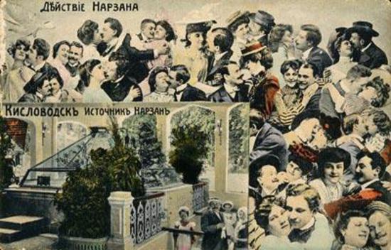 Курортный гедонизм, чувственные радости жизни, свежий воздух предгорий, щедрое солнце и шипучий нарзан… Неслучайно открытки с изображениями Замка коварства и любви в Кисловодске были очень популярны. «Видно, что для отдыхающих парочек время суток никакой роли не играет, - продолжает Николай Маркелов, - для них всего важнее уединение, вздохи и поцелуи».