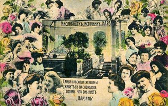 На открытках «эксплуатируется» и любовная тематика. Красивые женщины и счастливые парочки пьют Нарзан и от этого становятся еще красивее и счастливее…