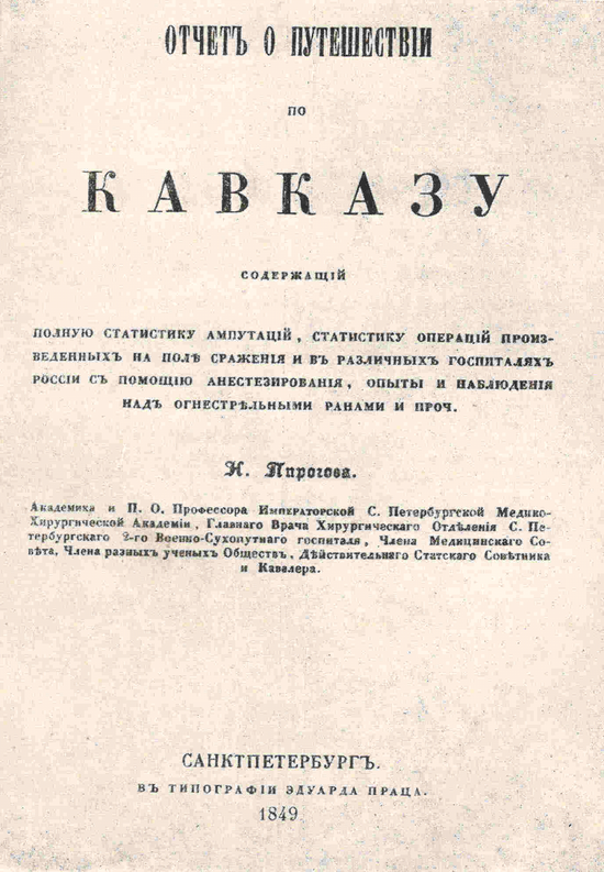 Николай Иванович Пирогов, врач, писатель, философ, путешественник, был, пожалуй, одним из первых профессионалов, обративших внимание на искусство врачевания на Кавказе и написавший об этом целую главу в своей книге. Пирогов впервые в медицинской практике применил эфирный наркоз при операциях в военных условиях, и было это во время осады русскими войсками дагестанского аула Салты в 1847 г.