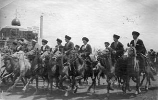 Следует сказать, что скачки и традиционный образ мужчины-воина активно использовать при создании новых праздников – на всем Кавказе в 1920-1930 гг. были очень популярны скачки, которые устраивались как в аулах, так и в областных и краевых центрах. В свое время в архивах я находила инструкции Народного комиссариата земледелия о проведении скачек, сметы расходов на призы, инструкции по переписи лошадей, указания о том, как расходовать прибыль со скачек и т.д.
