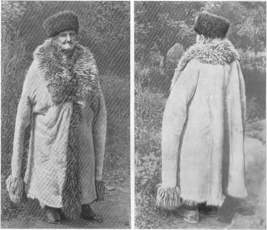 С начала XX в. она постепенно заменяется шубой, отрезной по талии, сзади и на боках присборенной, иногда с застежкой от шеи до пояса, напоминавшей русский полушубок. Шубы вышеописанных типов носили и в селении, и на кошах.
